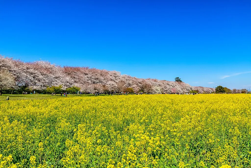 埼玉県幸手市にある権現堂桜堤は、約1,000本の桜と一面に広がる菜の花が同時に楽しめる名所。ピンクと黄色のコントラストが美しく、視界いっぱいに春が広がります。土手沿いを歩きながら眺める景色は開放感抜群。写真を撮りながら春を満喫したい方におすすめです。