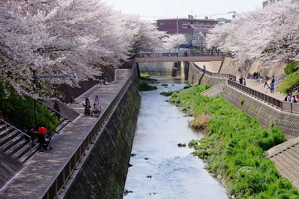 川沿いを歩きながら楽しむ、のびやかな桜並木