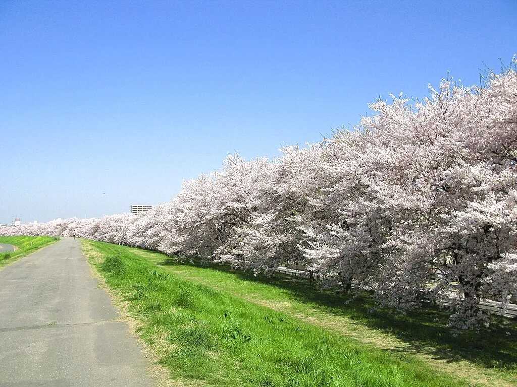 荒川沿いに続く熊谷桜堤は、約500本の桜が並ぶ開放的なスポット。道幅が広く、歩きやすいため、ゆったりと散策しながら桜を楽しめます。特に夕方は光がやわらかく、穏やかな雰囲気に。混雑を避けつつ、のんびり花見をしたい方に向いています。